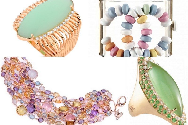 What a lot of candy jewelry! Carla Amorim, Chanel Plexiglass Cuff with candy, Zoccai gioielli bracelet, Moraglione ring